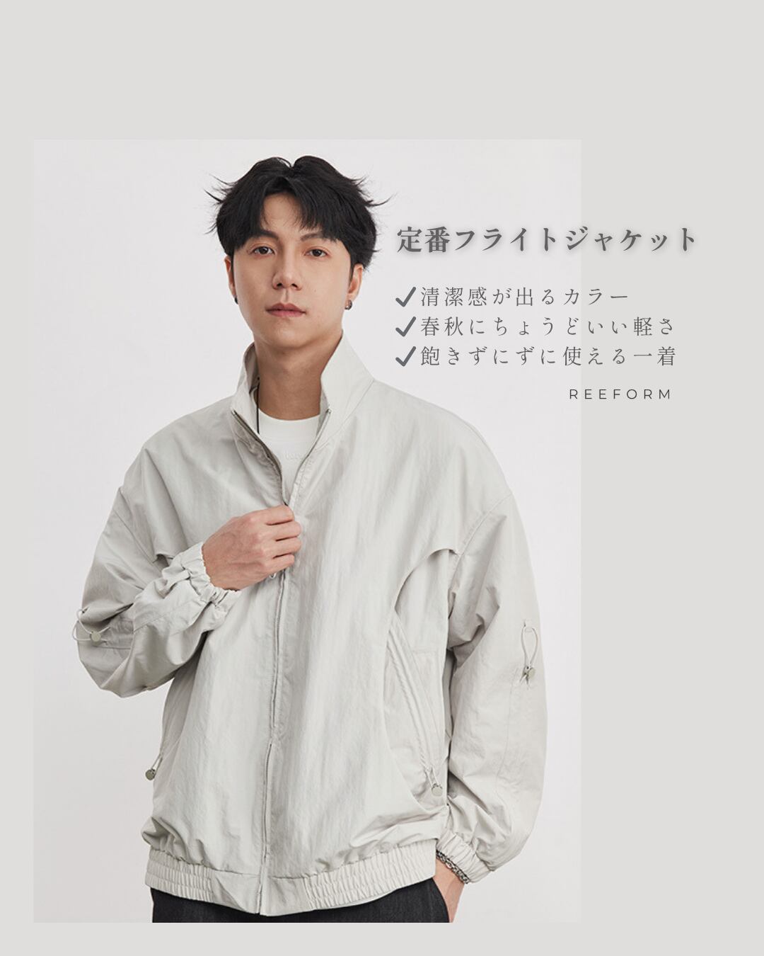 【人気】軽量ライトジャケット|定番の春アウター| ライトグレー 26SP-017
