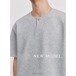 チェック柄 パッチワーク Vネック Tシャツ/グレー-26SP-033