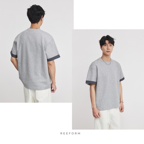 メンズ カラーブロックカジュアル 半袖T メンズ春夏 大人/杢グレーRE26SP-035