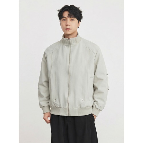 ナイロンジャケット メンズ ジップ付きシンプル カジュアル 春アウター 無地/ ブラックRF-26SP-055