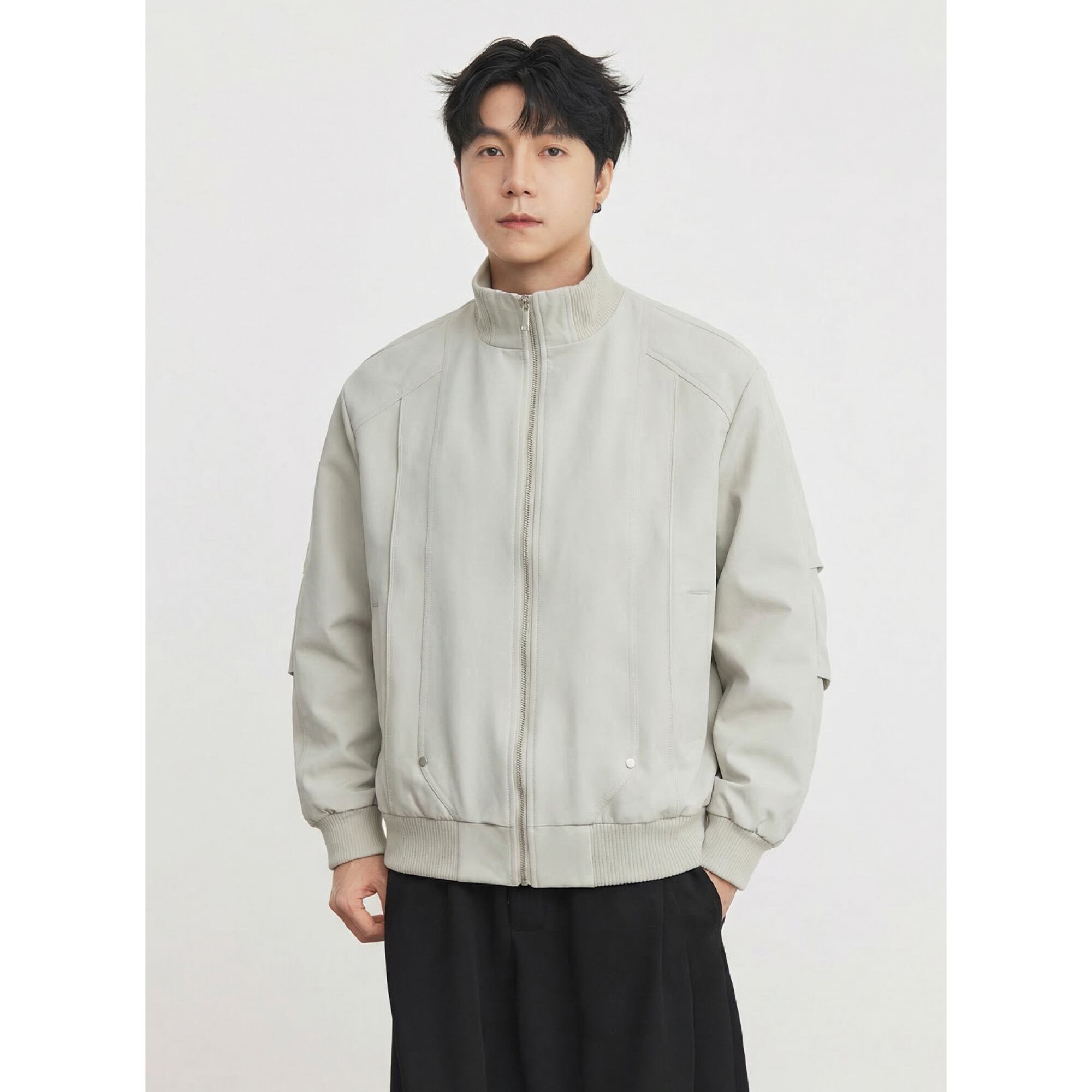 ナイロンジャケット メンズ ジップ付きシンプル カジュアル 春アウター 無地/ カーキRF-26SP-055
